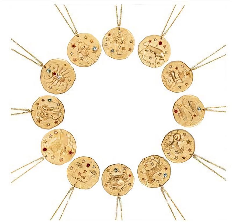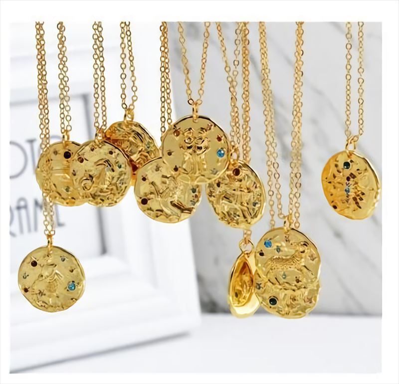 12星座のモチーフがエンボス加工されたコイン型のおしゃれなネックレスです。