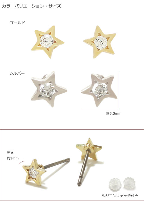 ■ ITEM SPEC ■ [商品名] 日本製 チタンポスト スターモチーフ 1粒Czキュービックジルコニア ピアス [参考サイズ] リボン大きさ:約5.3x5.3mm 、厚み:約1.0mm キュービック:約1.8mm ポストの長さ:約10mm [重量] 両耳(合計):約0.4g(キャッチ含む) [素材] ・真鍮/ニッケルフリーメッキ ・チタンポスト ・キュービックジルコニア ◆シリコンキャッチ付き ※CZダイヤ(キュービック・ジルコニア)は、人工石です。
