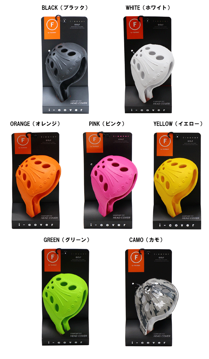 ■素材:EVA ■対応:フェアウェイウッド用 ■カラー:BLACK(ブラック)、WHITE(ホワイト)、 ORANGE(オレンジ)、PINK(ピンク)、YELLOW(イエロー)、 GREEN(グリーン)、CAMO(カモ) ▲多様なヘッド形状に対応できるよう設計しておりますが、クラブが合わないものもございます。